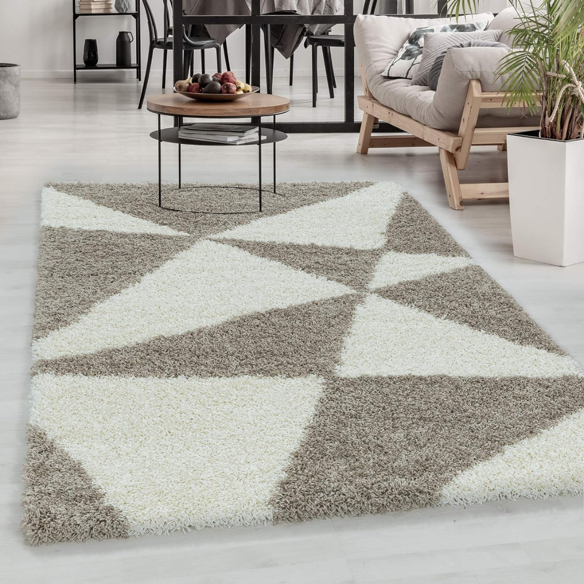 Deep pile rug, shaggy rug, living room rug, patterned in checked design
